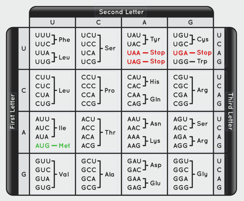 Life uses a triplet code (Codons): 3 DNA bases = 1 Amino Acid.